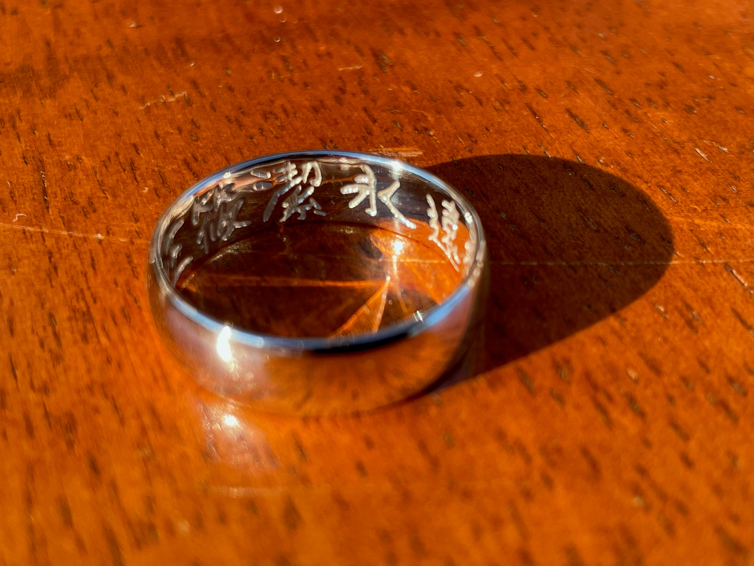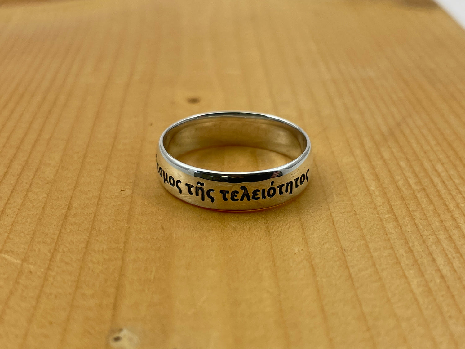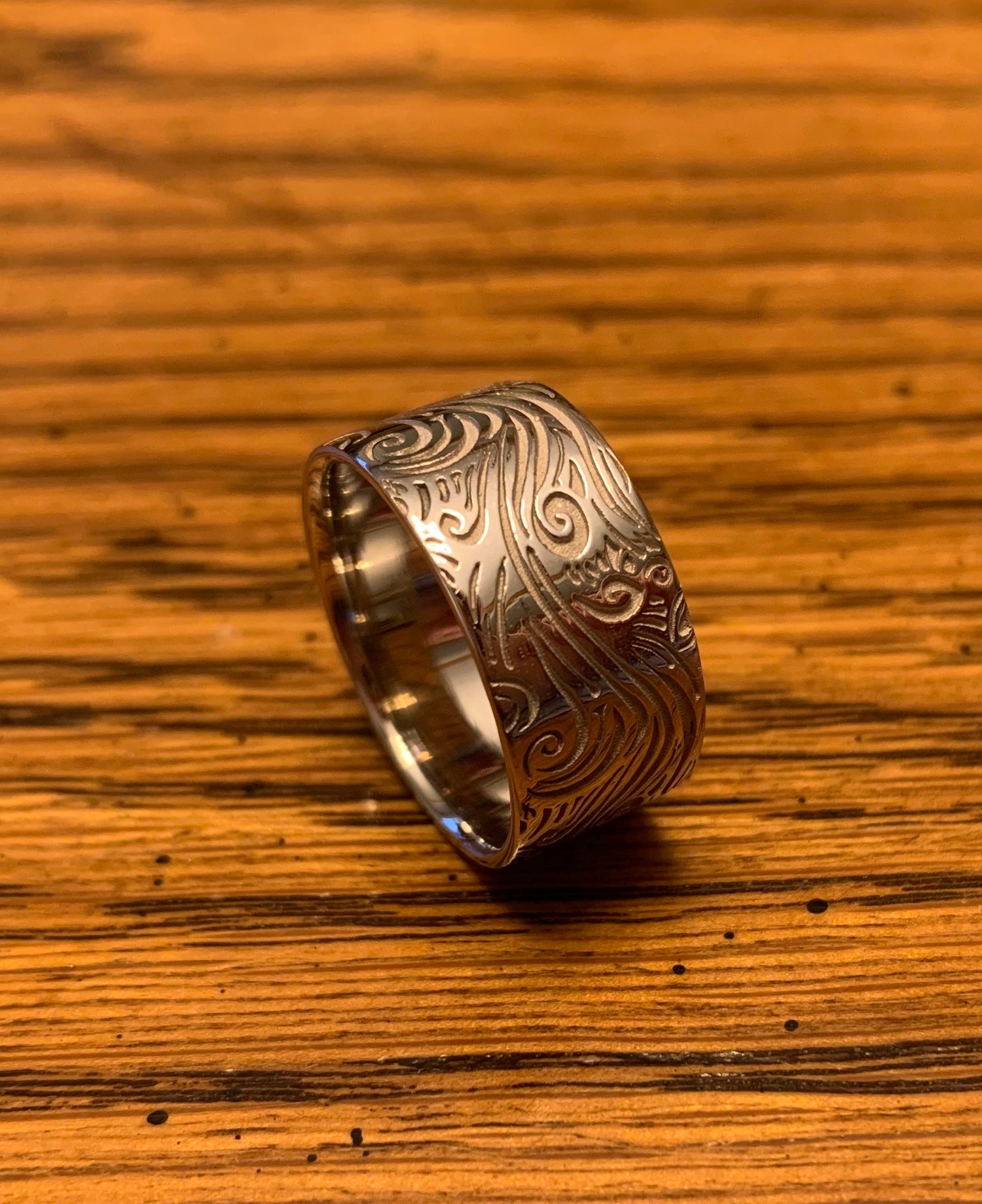 A sterling silver ring (Carpo) with the "antiqued" finish which darkens engraved areas.