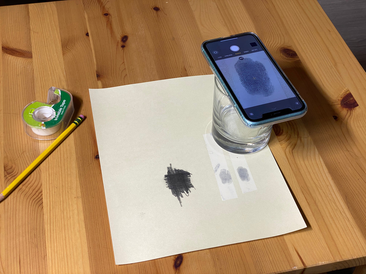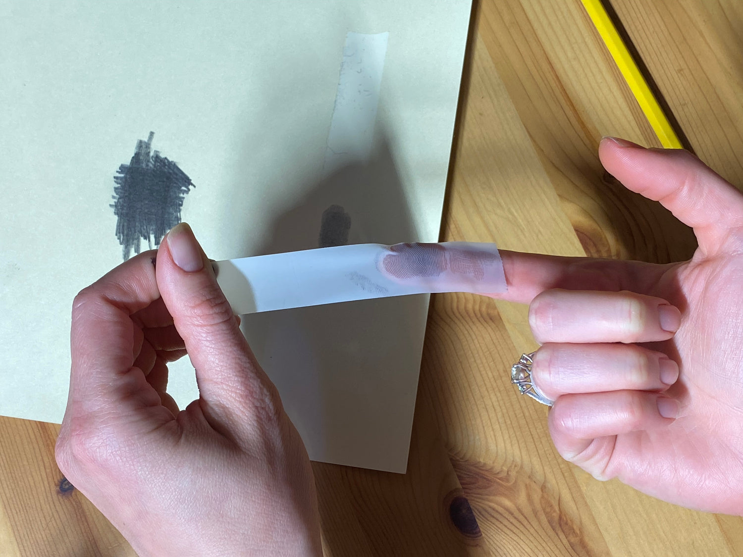 Touch your finger to the sticky side of some tape and then stick the tape to a piece of paper. Try multiple times to get a clear print. Our artists will touch up gaps or smudges, but a well captured fingerprint from you helps us ensure as much accuracy as possible.