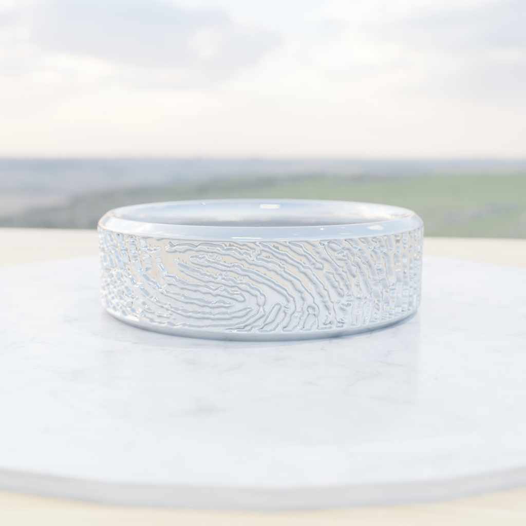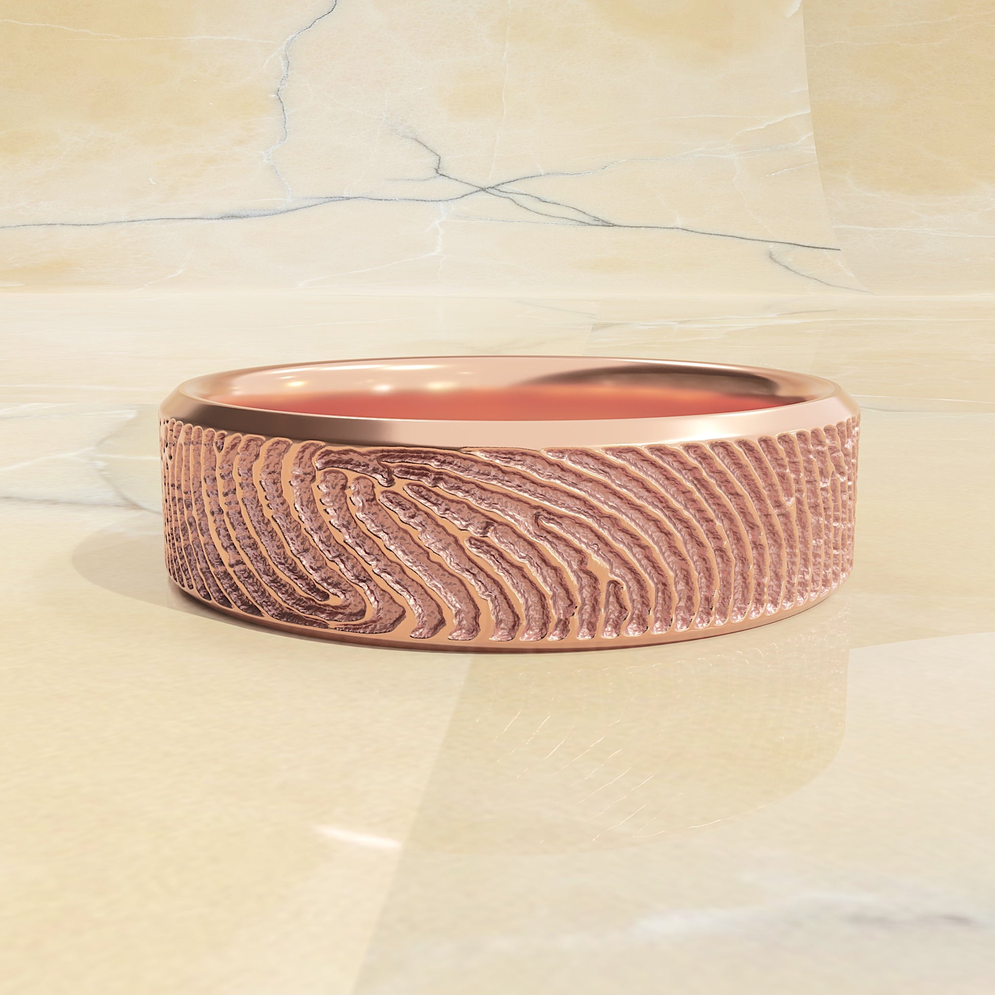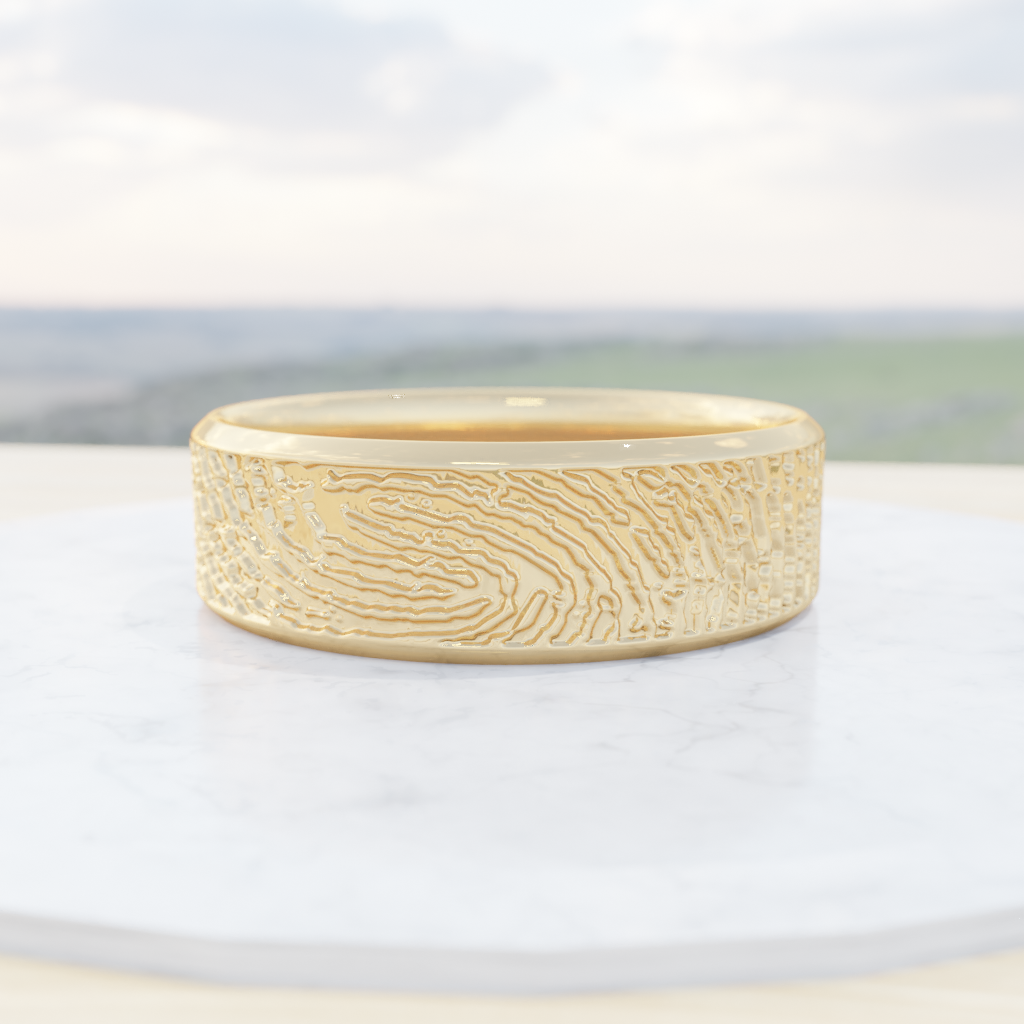 This medium width band has angled edges for those wanting a sharp look, perfect for framing an engraving on its flat outer surface.