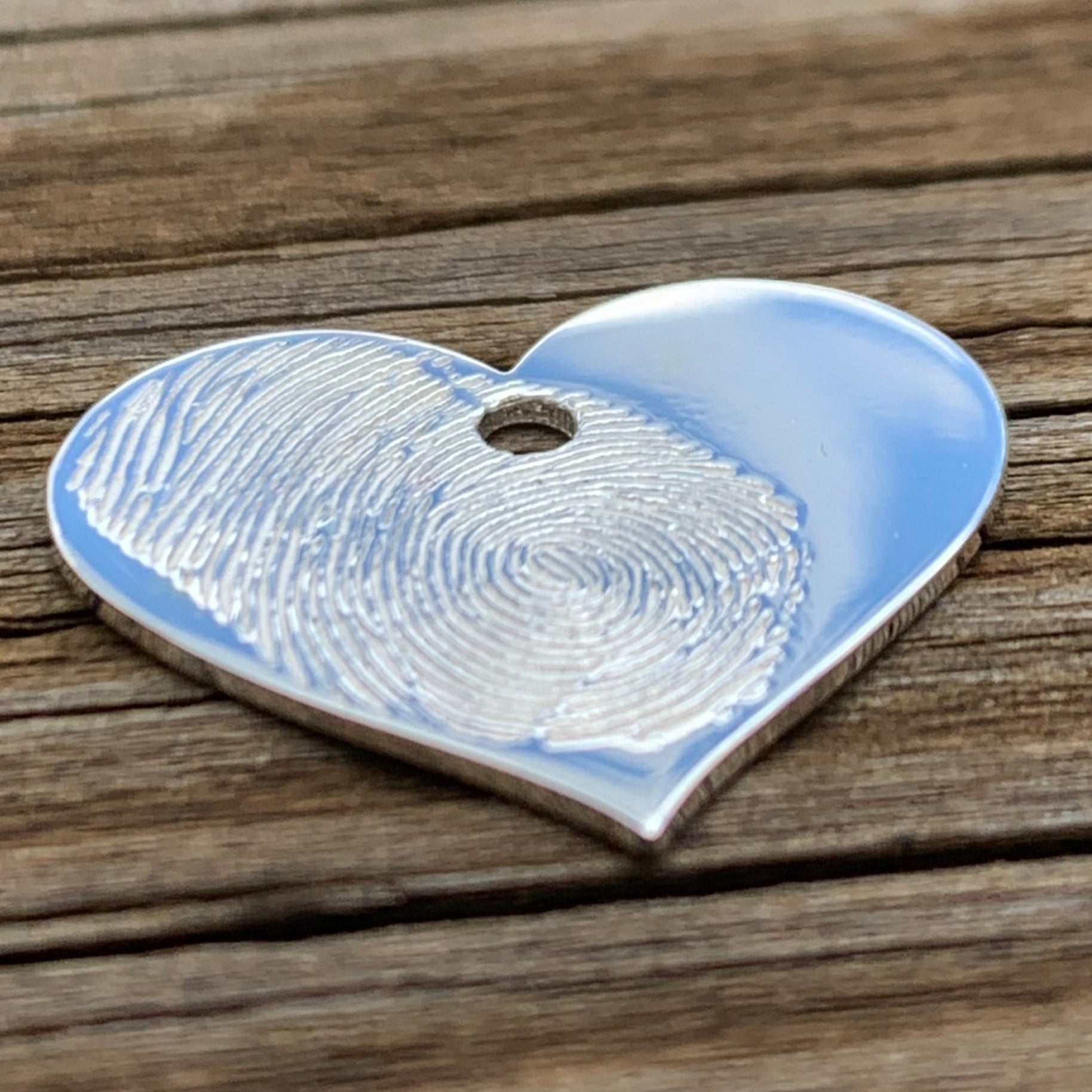 Engrave your memory into a heart that you can wear close to your heart. Perfect for a gift. Our standard sizes are 3/4" and 1", but please reach out if you need another size.