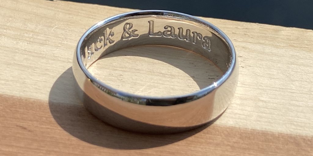 Try this half round, comfort fit band in sterling silver for a more affordable version of our most popular style. The medium width is great to show off your engraved design on either surface!